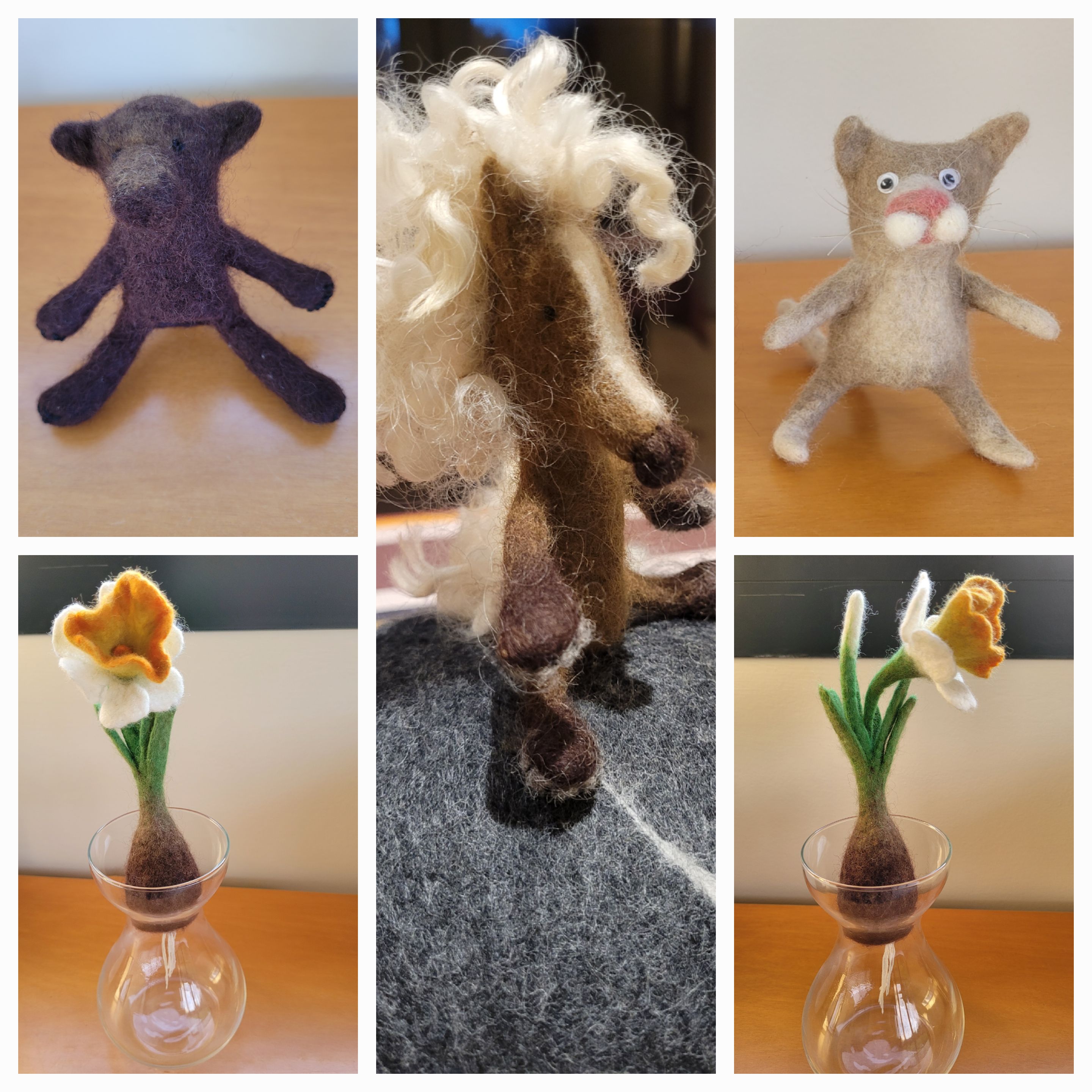 Стрим с лошадками я начала в больнице, все было с собой, даже отдельный номер сняла. Но подвел интернет, и я сбилась с пути на самом интересном месте: гривы и хвосты. И вот теперь, когда на носу восточный Новый год я вернулась к записи стрима и узнала о многообразии способов создания грив и хвостов. Поражает дотошность Яры в исследовании вариантов для нас, у которых или альпака, или вискоза, или пряжа, или мех. В этом вся Яра, ее забота о тех, кто не рядом, а за тридевять земель. Пока я в процессе, есть пара дней для финиширования. Но конь уже вырисовывается, разложен и второй. Очень необычно нарастили объем для глазных выпуклостей, и мордочка сразу стала похожей на лошадиную. Вспомнила, что прием с ноздрями мне знаком по дракончику. Яра учит так, что потом можно применять эти приемы на других проектах. И хотя я уже и сама могу создавать игрушки, пройдя многие МК Яры, я все равно возвращаюсь. Здесь хорошо, глубоко, качественно. Яра притягивает своим мастерством и личными качествами.